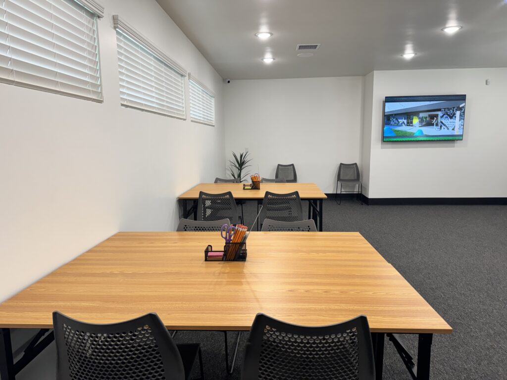 The community lounge provides a safe place for students to relax, connect with friends, and spend time with supportive adults. These consistent spaces help students feel grounded and supported.